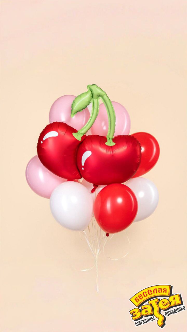 Сет состоит из: фольгированной фигуры Вишни (33"/8 см), восьми латексных шаров 14" (35 см). Вариант внешнего вида шара Вишни уточняйте у менеджера.