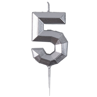Декоративное украшение стола. Серебряная свеча на пике в форме цифры "5" - отличное решение для декорирования торта, десерта ко дню рождения или юбилею. Высота свечи-цифры 4,5 см.