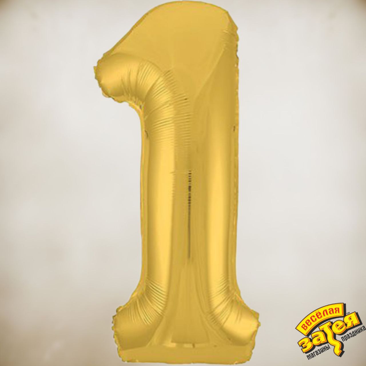 Фольгированный шар в форме цифры 1 золотого цвета, размер 102 см. Наполняется гелием или воздухом через специальный клапан, шар с гелием привязывается на ленте к грузику, шар с воздухом можно привязывать к воздушному основанию.